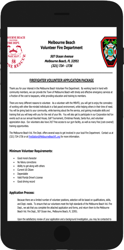Must be submitted in person. Hand it in at Melbourne Beach Vol. Fire Dept. Station 58 located 507 Ocean Ave, Melbourne Beach, FL 32951.3