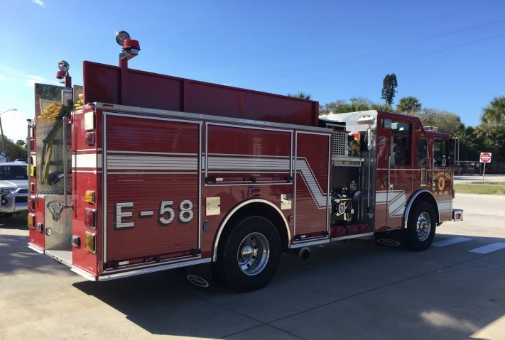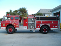 The Department was formally incorporated in January 1954. The Department’s first vehicle was an Army surplus truck that had been converted to a brush truck. It was provided by Brevard county in August 1953. The first two bays of the fire station were built in 1954 on the site of an old tennis and shuffleboard court. This first station was built with the labor of the volunteer firefighters and funded by donations. Before the station had been constructed, the truck was usually parked outside the home of Paul Earlebach, the Department’s first Fire Chief.