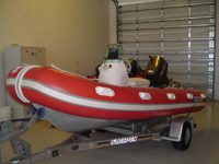A rigid hull inflatable boat with a jockey helm was purchased with donated funds to augment the existing service with an updated boat taking into consideration several important safety features recommended for ocean rescues.